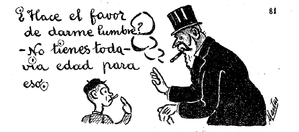 | 8 | él de usted no tiene todavía edad para eso (6). | yours is not yet in age [has not yet age] for that. |