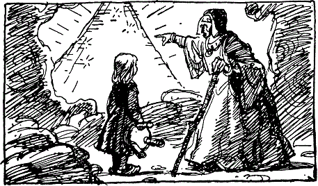 glisse aussitôt de trois pas en arrière. — Oh, madame, pour trouver mes frères je ferai tout! — Voici, donc, ma petite, voici de bons souliers chauds. Voici aussi la clef qui ouvre la maison où chaque soir reviennent tes frères. Prends tout ça, mais sache que des peines t’attendent (1). Pour son père, pour sa mère elle voulait aller. L’idée de retrouver ses frères lui donnait des forces. La voilà repartie. Il faut marcher. Il faut monter. Et elle va par un chemin de pierres. Elle est fatiguée. Elle veut s’asseoir, mais elle ne le peut pas. Elle va, elle monte toujours. Enfin, enfin elle arrive au pied de la montagne de verre. Elle chausse ses souliers. Elle commence à monter. Un pas en avant, trois pas en arrière. Elle glisse, mais se relève. Cependant elle monte encore. Cette montagne est si haute! Enfin la petite est arrivée tout au haut devant une maisonnette. Dans la poche elle veut prendre la clef que lui a donnée la vieille... Oh malheur! La clef n’est plus là... Que faire? Alors elle met son petit doigt dans le trou de la serrure. Et voici, qu’il entre. Elle le tourne. Voici que la porte s’ouvre. Elle entre dans la maisonnette, à demi morte de fatigue et de faim (2). Elle va près du feu où la soupe cuit, coupe du pain, prend la soupe, tombe sur une chaise et se met à manger. Puis dans un verre elle se verse de l’eau. À ce moment elle voit les sept corbeaux qui arrivent. Aussitôt, elle jette la bague de sa mère dans le verre et se cache vite. Ses frères entrent. Comme tous les soirs au soleil couchant, ils avaient repris pour la nuit forme humaine (3). — Quelqu’un est entré dans la maison, dit le premier: la porte était ouverte. |