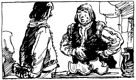 avait besoin d’un pot, pour fondre de la graisse (2). Il pouvait aller l'acheter à la ville. Mais il préféra de prendre le pot chez son voisin. Par malheur, le chat voulut manger la graisse, l’homme voulut chasser le chat, le chat cassa le pot et il arriva ce que vous imaginez (3). Mais, par chance (4), le pot se partagea en deux. L’homme rapprocha ces morceaux et rapporta le pot à son voisin. Il le posa sur la table, sans dire mot. Seulement le voisin vit tout. Qui casse les pots les paie(5). Mais l’homme ne voulait pas payer. Le voisin l’attaqua en justice (6). |