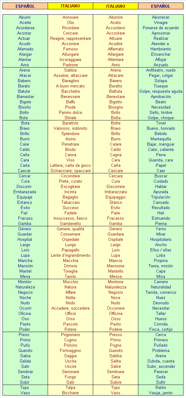 Falsi amici più ricorrenti nelle due lingue Falsos amigos mas frecuentes en los dos idiomas