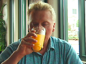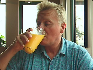 | L’uomo sta bevendo il succo d’arancia. | Мужчина пьет апельсиновый сок. | ||
