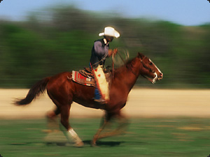 | Dov’è il bambino? Il bambino è su un cavallo. |