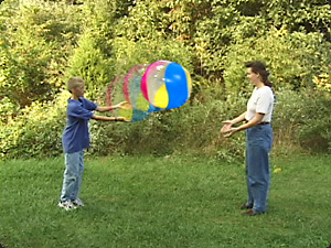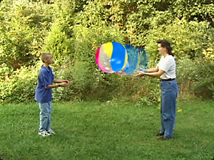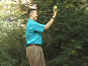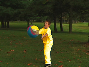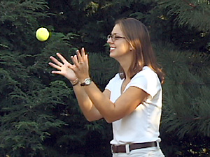 | La donna prende la palla gialla. | Женщина ловит желтый мяч. | ||