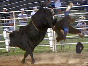 | Il toro calcia l’uomo. | Бык пинает человека. | ||