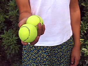 | Due palle gialle sono nella sua mano destra. | В её правой руке два жёлтых мяча. | ||