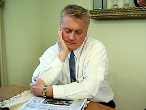 | Le mani dell’uomo sono sulle sue ginocchia. | Руки мужчины лежат на коленях. | ||