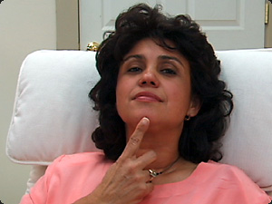 | Lei si sta toccando il mento. | Она трогает свой подбородок. | ||
