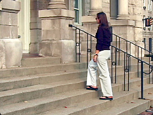 | La donna porta pantaloni neri. | Женщина одета в черные брюки. | ||