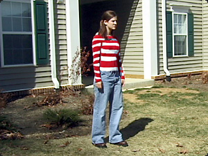 | Lei porta un maglione rosso e bianco e i jeans. | Она в красно-белом свитере и джинсах. | ||