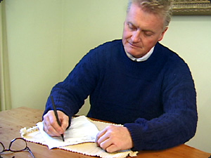 | L’uomo porta un maglione blu. | Мужчина одет в синий свитер. | ||