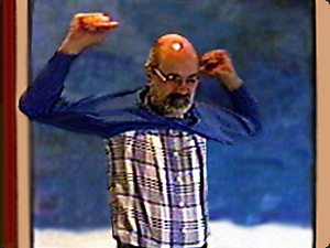 | L’uomo con gli occhiali si sta mettendo un maglione. | Мужчина в очках надевает свитер. |