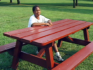 Сколько мальчиков сидят? Один. |