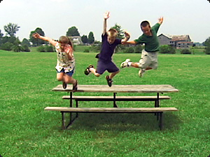 | Quanti bambini stanno saltando? Tre bambini stanno saltando. |