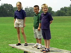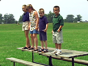 | Quanti bambini stanno in piedi? Tre bambini stanno in piedi. |