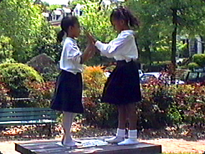 Сколько девочек в белых рубашках? Две. |