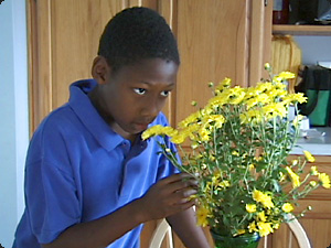 | Quanti bambini sono seduti? Uno. |