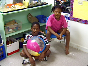 | Quanti bambini sono seduti? Due. |