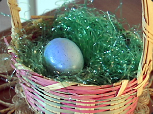 Какого цвета яйцо? Оно голубое. |