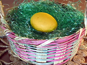 Какого цвета яйцо? Оно желтое. |