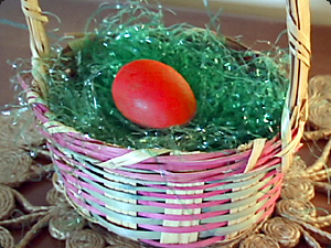 Какого цвета яйцо? Оно красное. |