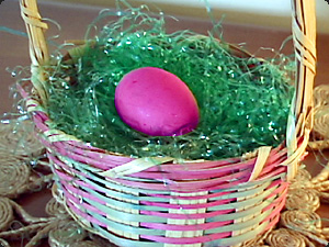 Какого цвета яйцо? Оно розовое. |