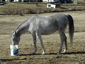 Какая лошадь ест? Серая лошадь ест. |