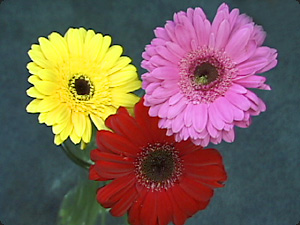 | un fiore giallo, uno rosso e uno rosa | Желтый цветок, красный цветок и розовый цветок | ||