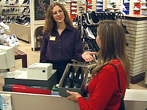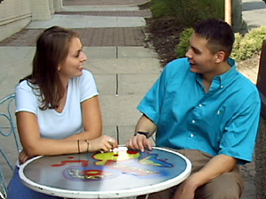| La donna sta parlando all’uomo. | Женщина разговаривает с мужчиной. | ||
