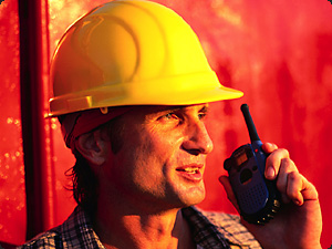 | L’uomo sta parlando nel radiotelefono. | Мужчина говорит в рацию. | ||