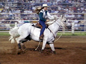 | La donna sta cavalcando. | Женщина едет верхом на лошади. | ||