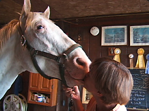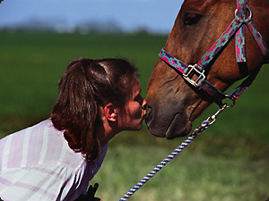 | La donna sta baciando il cavallo. | Женщина целует лошадь. | ||
