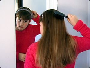 | La bambina si sta spazzolando i capelli. | Девочка расчесывает волосы. | ||