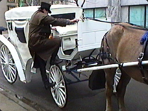 | L’uomo sta salendo nella carrozza. | Мужчина садится в карету. | ||