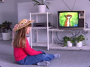| La bambina porta un cappello mentre guarda la televisione. | Девочка носит шляпу в то врем как смотрит телевизор. | ||