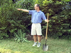 | L’uomo indica mentre tiene una pala. | Мужчина указывает, держа в руках лопату. | ||