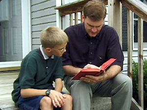| L’uomo legge un libro mentre il ragazzo ascolta. | Мужчина читает книгу в то время как мальчик слушает. | ||