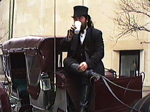 | L’uomo beve mentre siede nella carrozza. | Мужчина пьет, сидя в карете. | ||