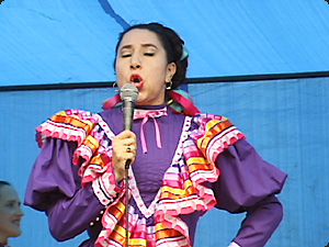 | Lei sta cantando con un microfono. | Она поёт в микрофон. | ||