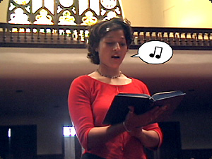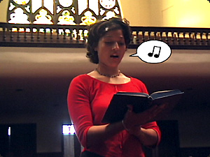 | Lei sta cantando senza un microfono. | Она поет без микрофона. | ||
