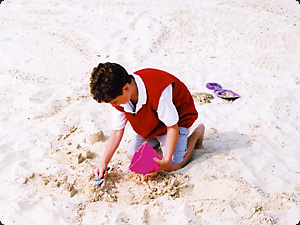 | Il bambino senza maglione sta giocando nella sabbia. | Мальчик без свитера играет в песке. | ||