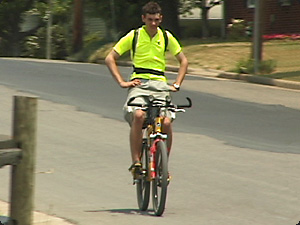 | La persona senza casco sta andando in bicicletta. | Человек без шлема едет на велосипеде. | ||
