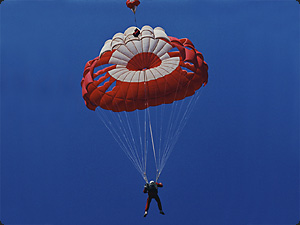 | L’uomo salta con un paracadute. | Мужчина прыгает с парашютом. | ||