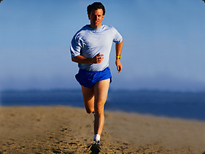 | L’uomo con una maglietta sta correndo. | Мужчина в майке бежит. | ||