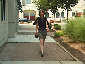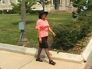 | La donna senza un cappello sta camminando. | Женщина без шляпы идёт. | ||