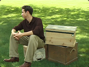 | L’uomo senza cappello è seduto su una scatola. | Мужчина без шляпы сидит на коробке. | ||