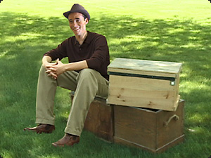 | L’uomo con un cappello è seduto su una scatola. | Мужчина в шляпе сидит на коробке. | ||