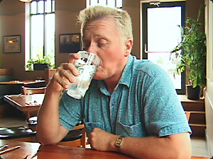 | L’uomo non può parlare ora perché sta bevendo. | ||