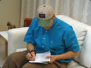 | Che sta facendo l’uomo? Sta seduto con suo figlio. |