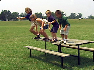 | I bambini saltano dal tavolo. | Дети спрыгнут со стола. | ||