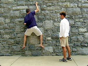 | L’uomo con il blusotto bianco si arrampicherà sul muro. | Мужчина в белом пиджаке заберется на стену. | ||